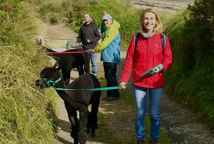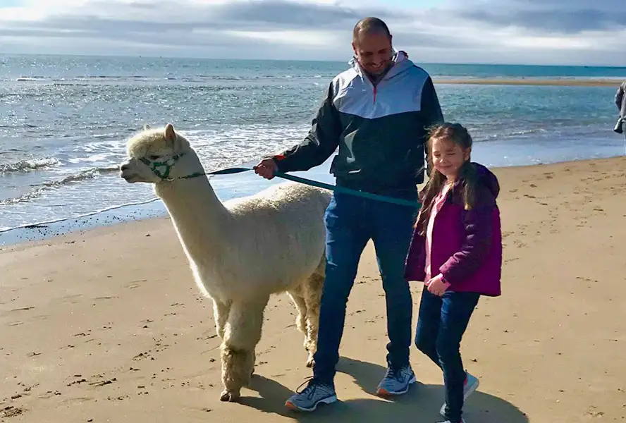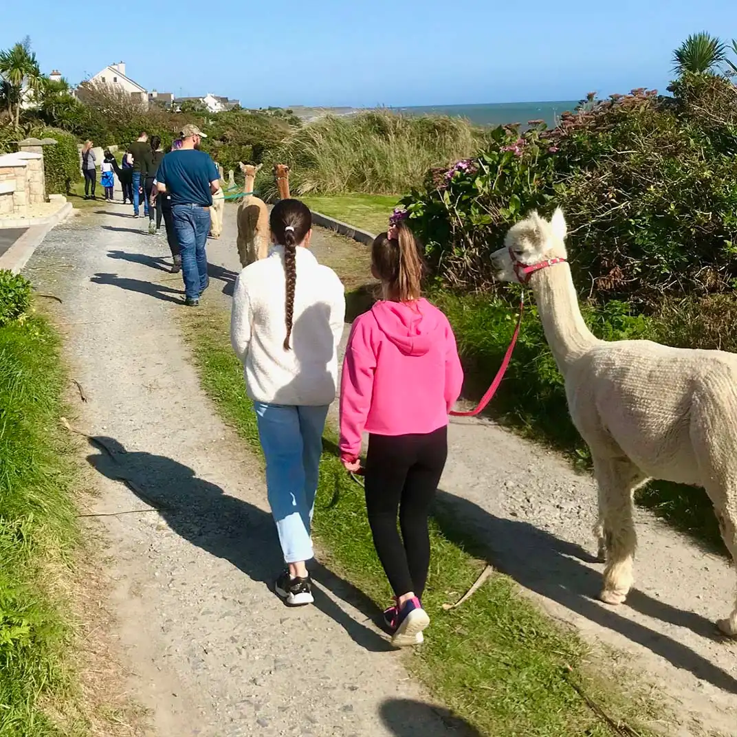 The beach trek lasts approx 90 minutes and includes refreshments. This experience is not suitable for young children aged 7 years and under. We would recommend the field trek for them. Children aged 12 years and over can lead their own alpaca but must be accompanied by an adult.